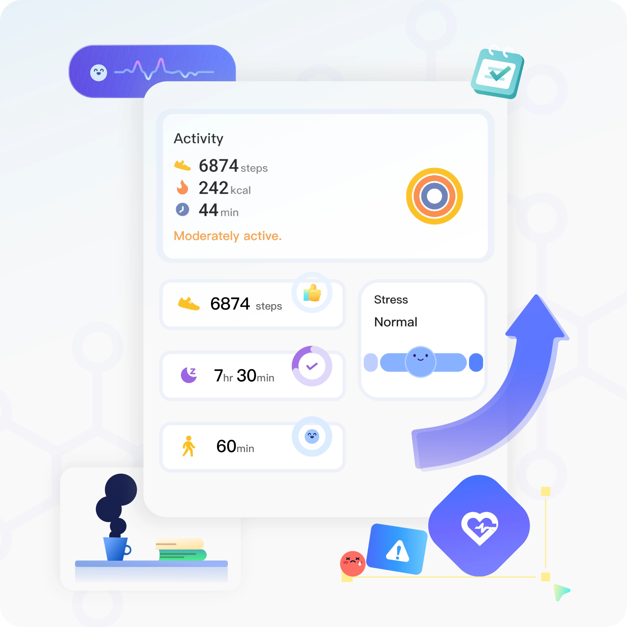 Instantly access essential health data, including sleep, activity, and stress levels.